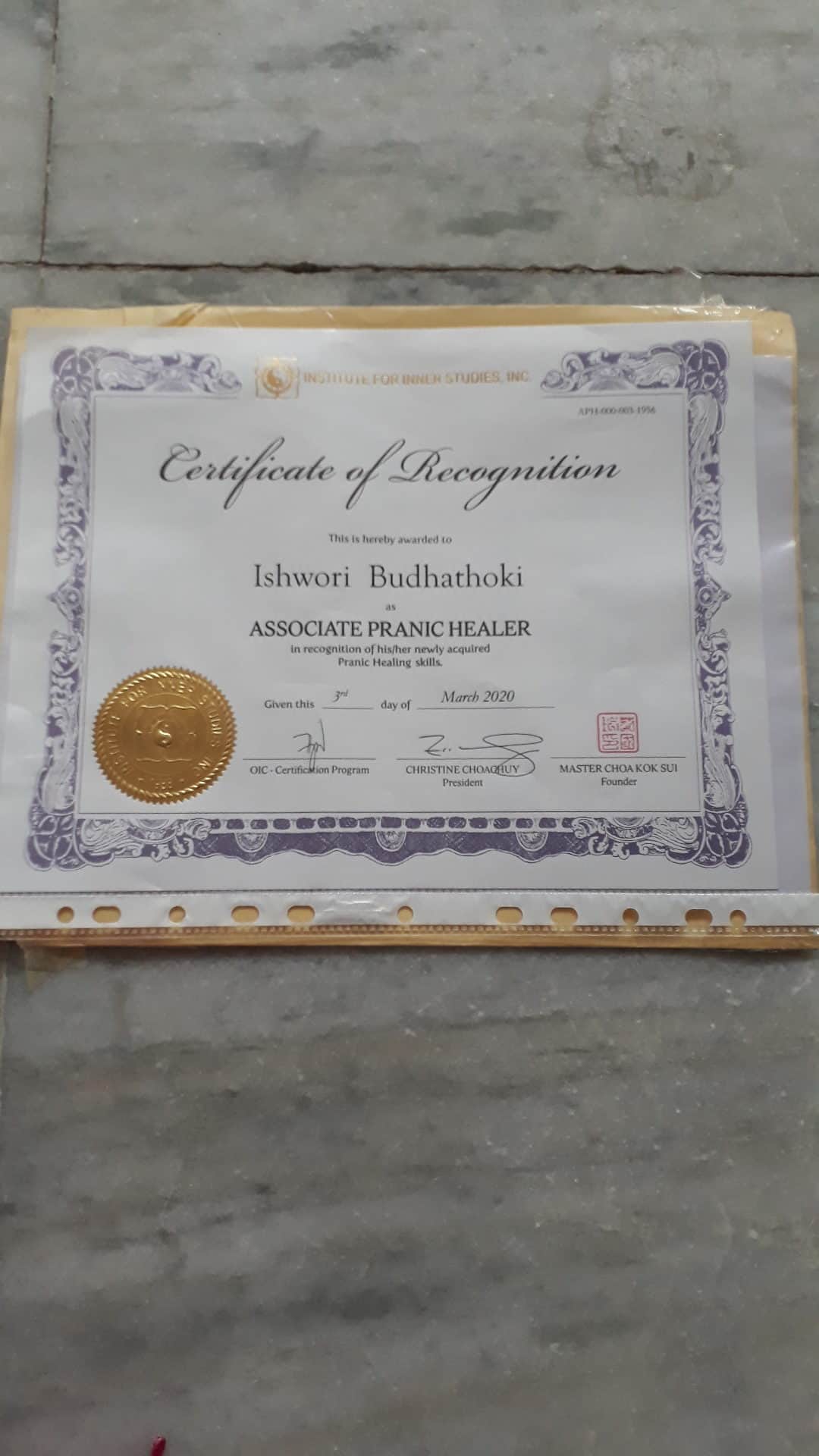 Thank Ishwori and Pranic healing.