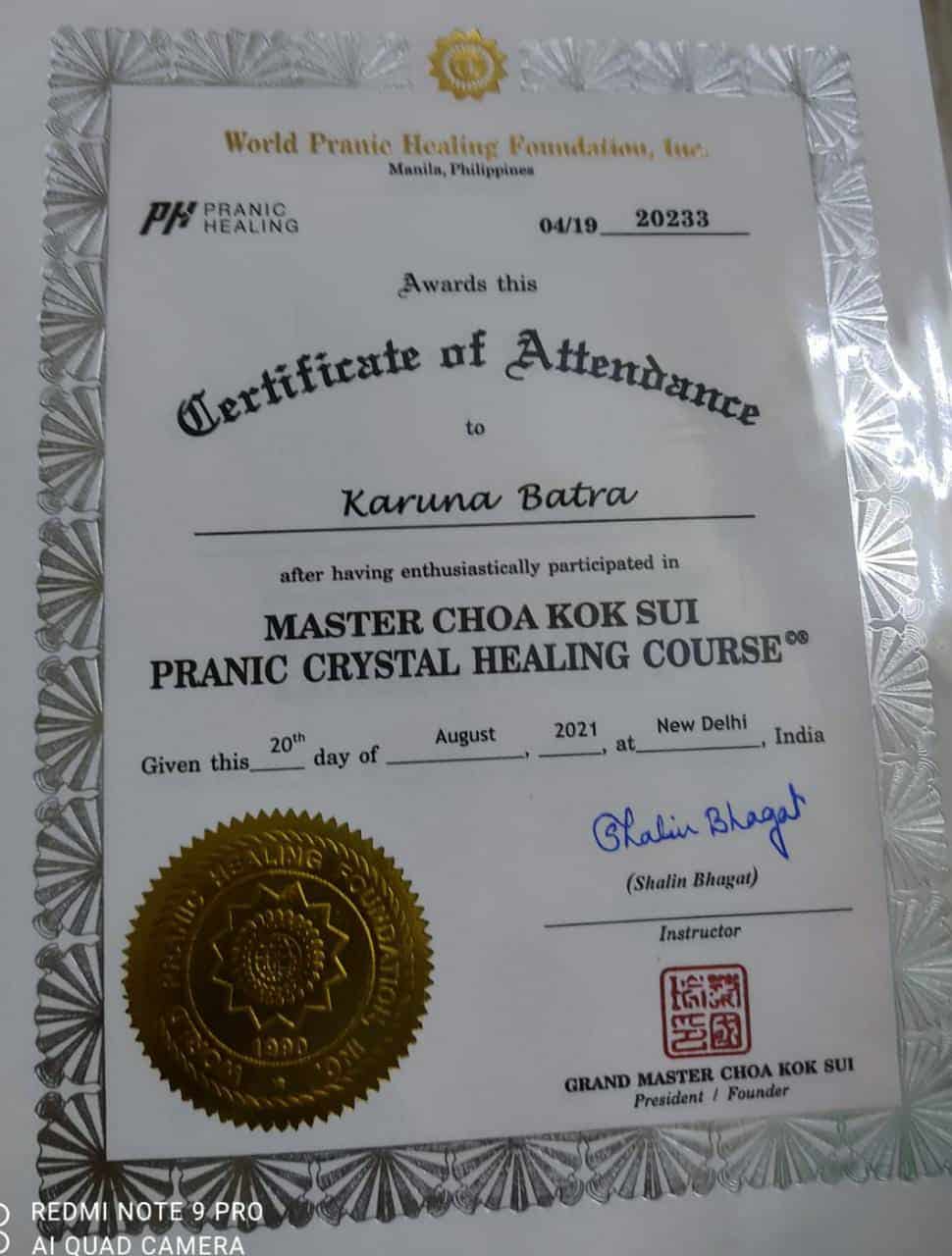 Karuna Batra is a Pranic healer in Rohini, Delhi. She started her journey as a Pranic healer in 2006. She has worked with one of the senior Pranic healers for 5 yrs at her center located in Sector-7, Rohini. She has completed doing basic Pranic Healing, Advanced Pranic healing course, Pranic Psychotherapy, Crystal Pranic healing courses.