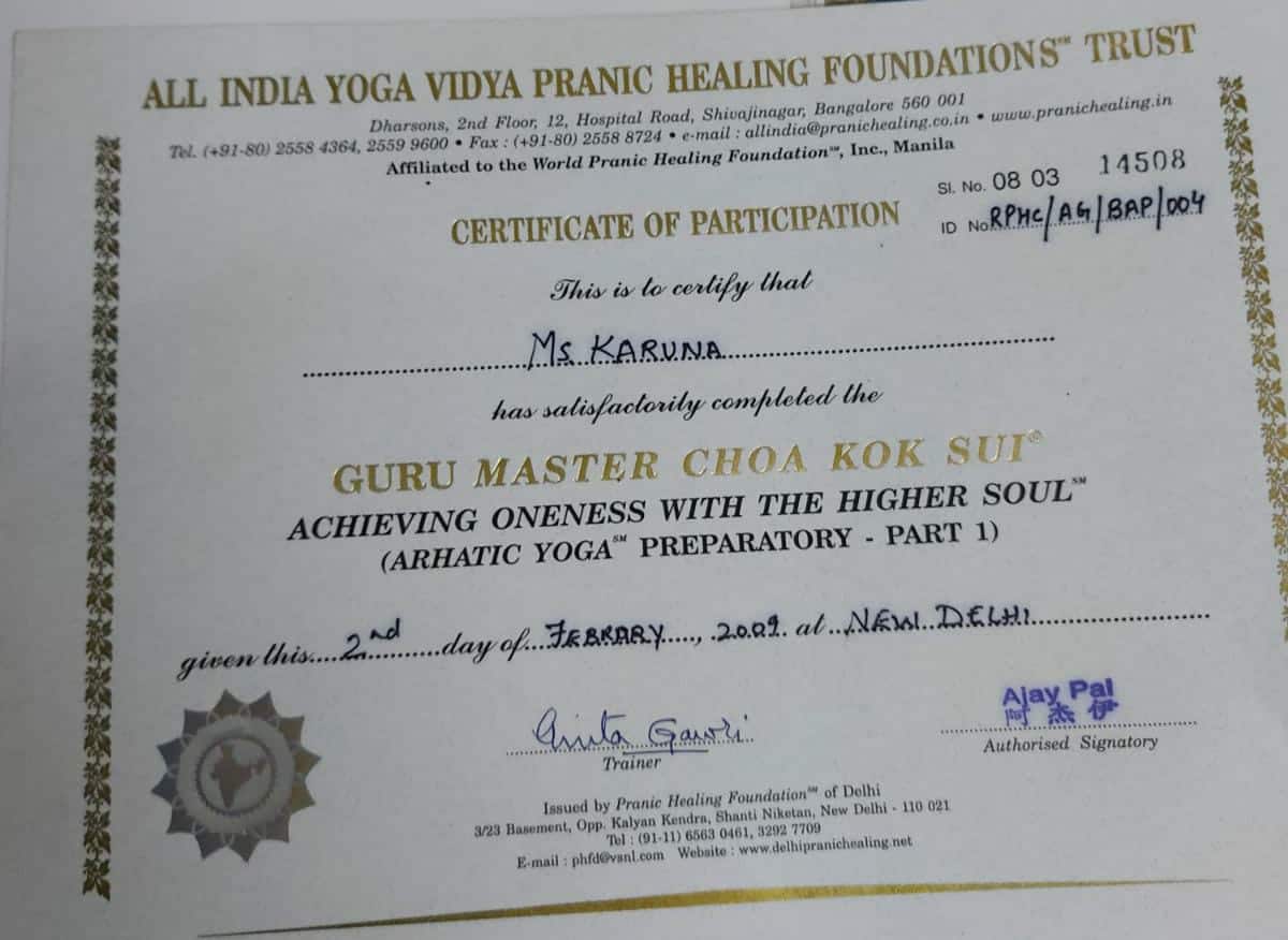 I am truly indebted for the pranic healing sessions I have received from Karuna ma’am. My kidney creatinine level has reduced in just 12 sessions. This remarkable improvement has not only given me hope but also strengthened my belief in the power of pranic healing.